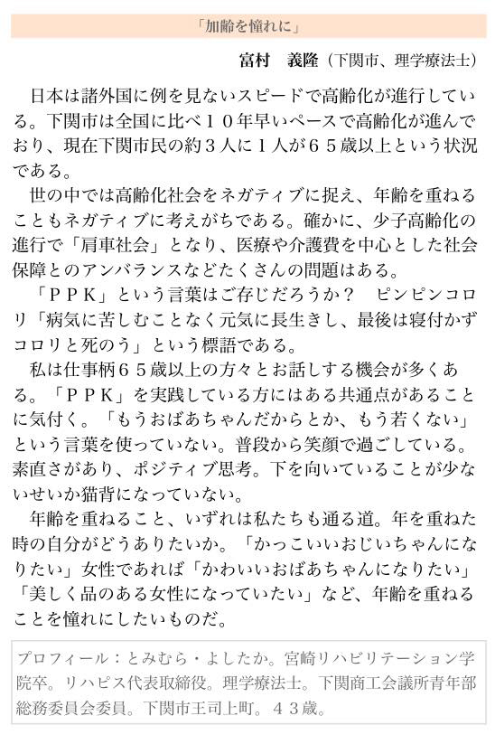 ・2018年 9月 3日(月)掲載  「加齢を憧れに」