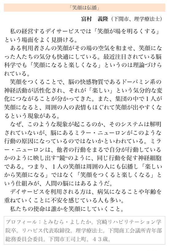 ・2018年10月15日(月)掲載  「笑顔は伝播」