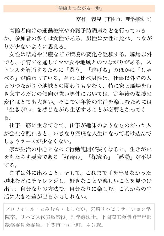 ・2018年10月22日(月)掲載  「健康とつながる一歩」