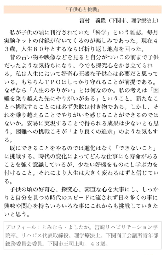 ・2018年10月29日(月)掲載  「子供心と挑戦」